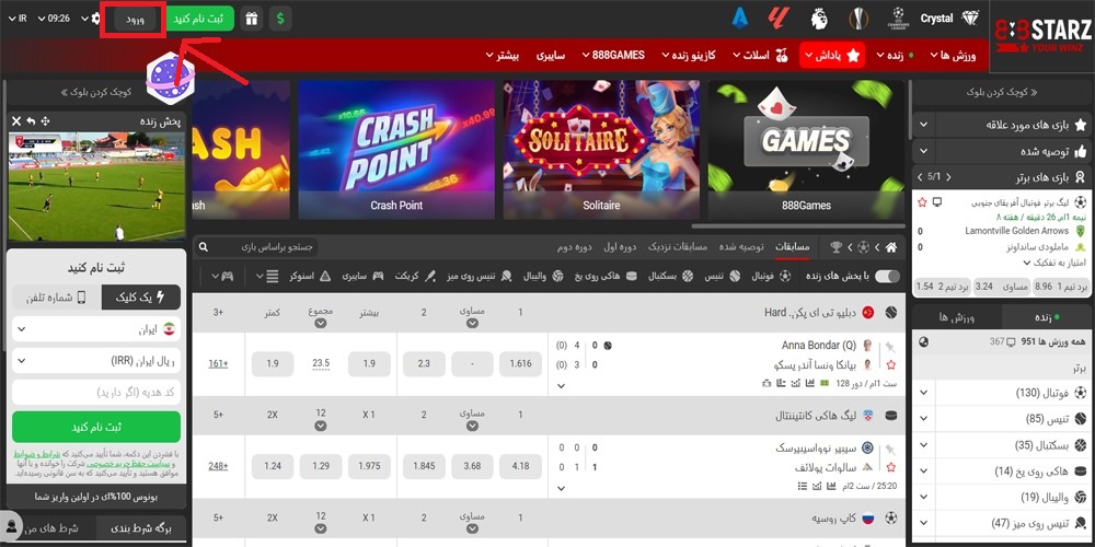- کافی است در سایت یا اپلیکیشن 888Starz ثبت نام کنید یا وارد شوید.